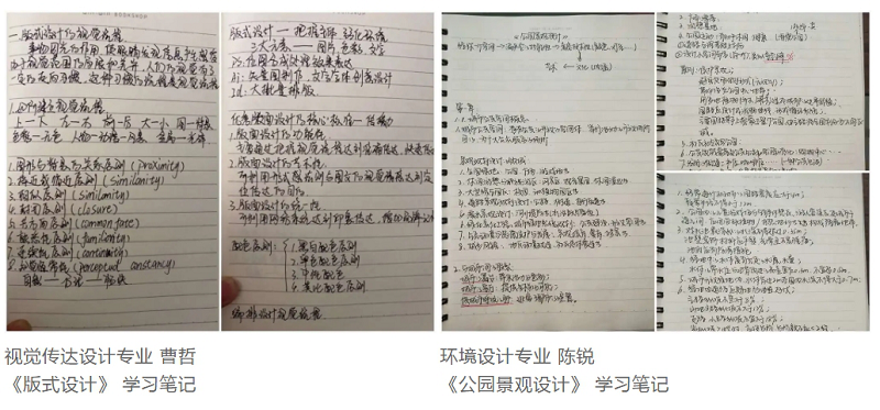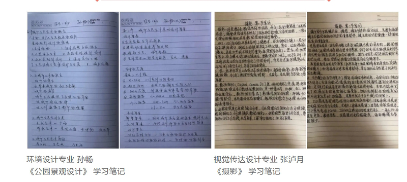 不管是图文并茂、字迹工整的笔记,还是重点突出、注解生动的批注,或是逻辑清晰、便于理解的知识网络,都是艺术系学子们勤学与乐学的证明。此次网课笔记抽查工作有利于艺术系管理和监督疫情期间学生网课学习质量,以笔记成为一种习惯,留下宝贵的学习印记。